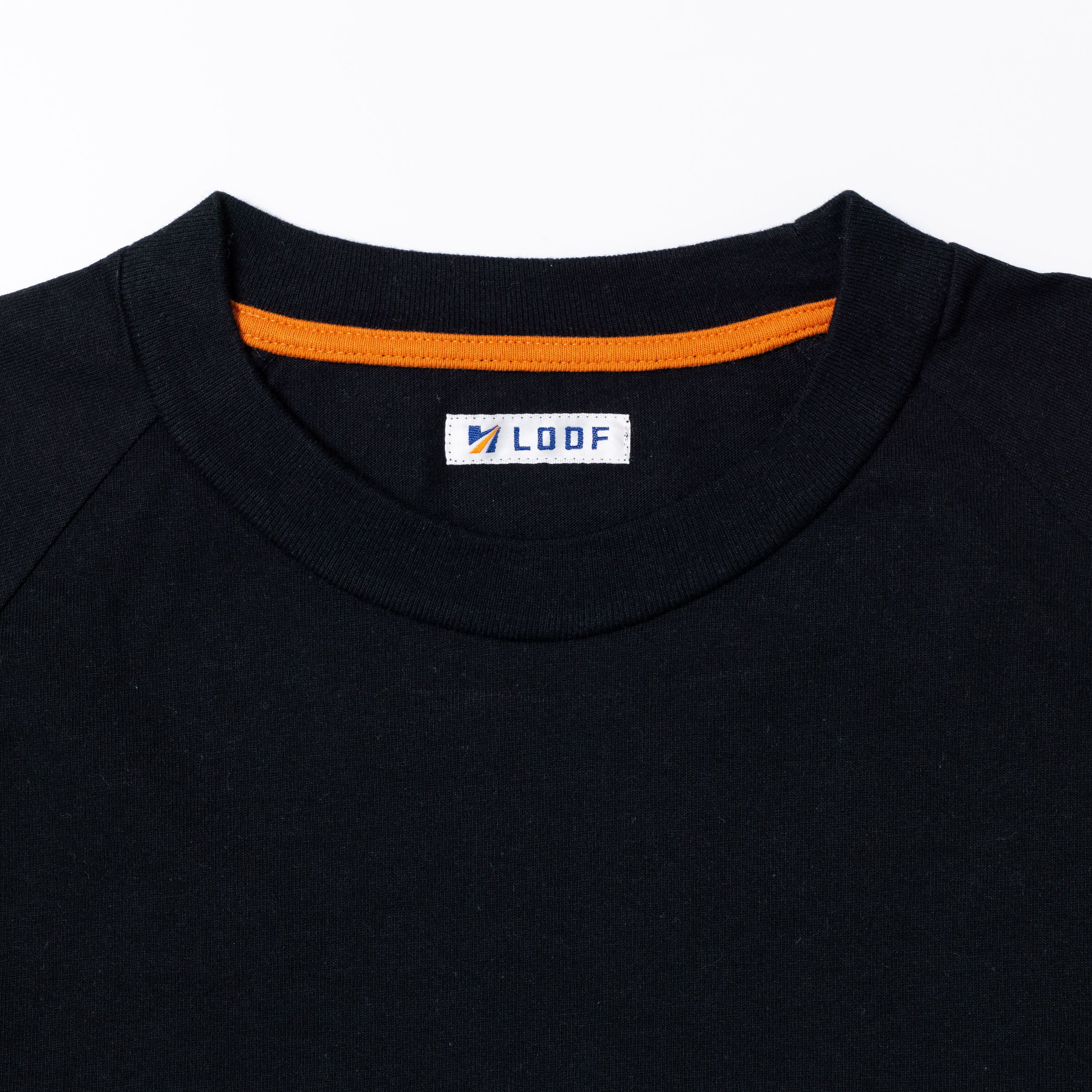 ・耐久性と遊び心を両立した「裏バインダー」 ロックネックの弱点である“首元の伸びやすさ”を防ぐため、裏バインダーでしっかりと補強。実用的な耐久性を高めるとともに、ブランドカラーである「オレンジ」を採用することで、脱いだ時やふとした瞬間に覗くさりげないアクセントになっています。